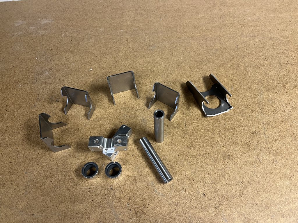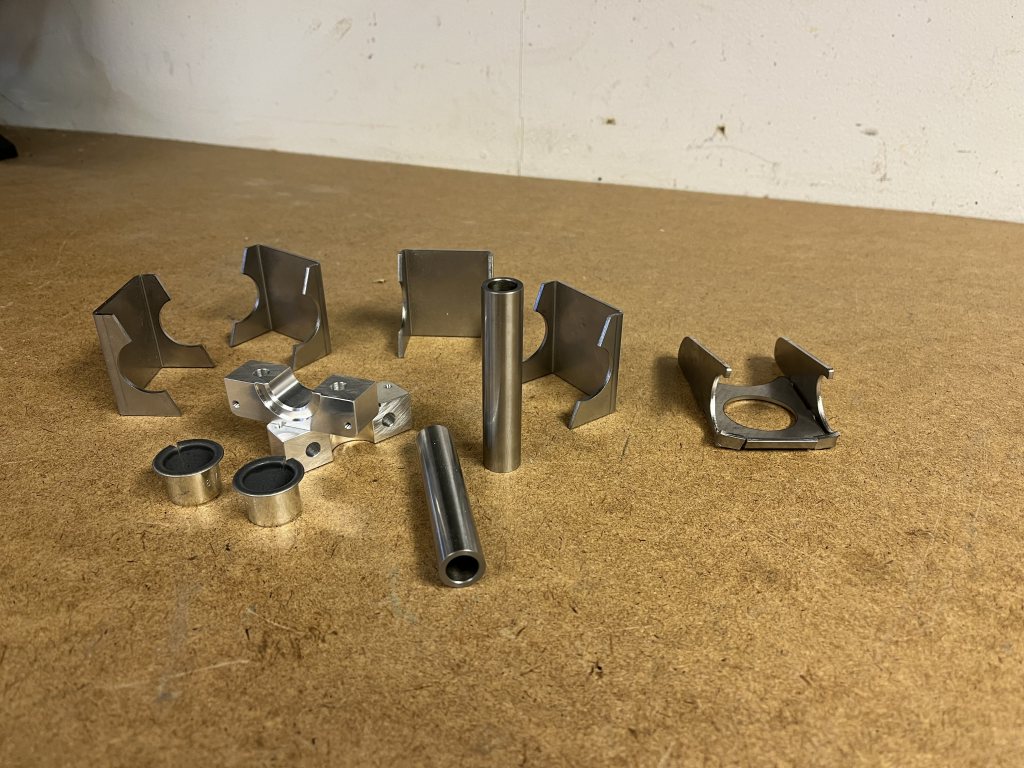 Lagren levererade MecMove, och de främre stolsfästena är tänkta att vara bockade plåtar som svetsas på ett rundrör. Sedan får jag diskutera med någon mer kunnig om jag borde svetsa fast röret, eller kan skruva fast det i chassit. Rundrören i fråga är också införskaffade; om jag nu gick på Docol R8-spåret i huvudbågen, var det väl lika bra att använda det för de 25mm-rör som ska kompletteras eller ersättas också. Några överblivna bitar från andra projekt kunde införskaffas.