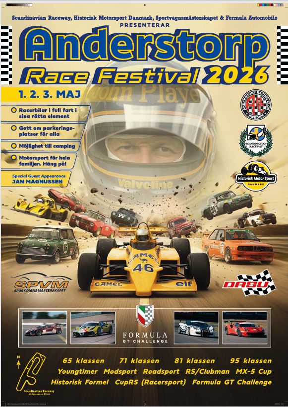 Men innan vi kommer till Ring Knutstorp så skall vi upp till Custom Motor Show, Elmia i Påsk. Du hittar oss i Sportvagnsmästerskapets monter i B-hallen tillsammans med Peter Henblads läckra Miodsport BMW. Kom och prata racing med oss. I SPVM kan du åka med alla olika sportvagnar, mer eller mindre modifierade. Sedan kan du också köpa din biljett till Anderstorp Race Festival 2026! Vi har även den läckra postern till försäljning.