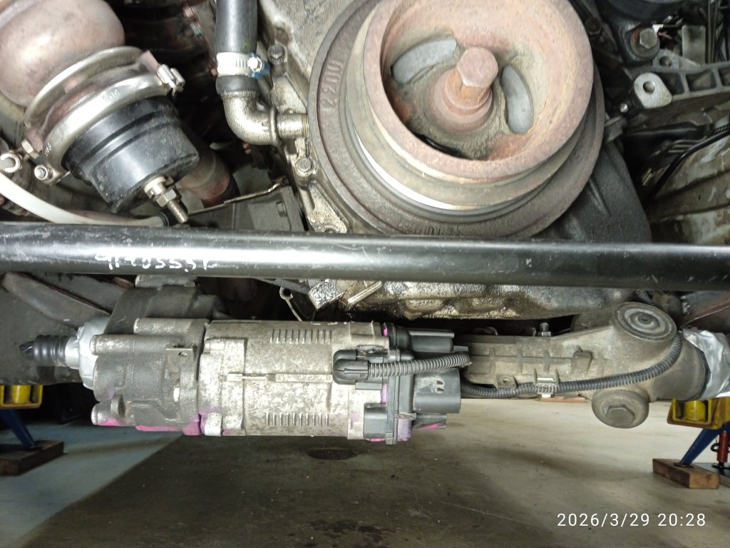 Tack för tipset, Jag mätte avstånd mellan frambalkens nedre infästning och radiellt center vid inre ledpunkten för styrstaget. Hydralservot. 30.5mm Eservot. 26mm (då ligger kuggstången på max avstånd från oljetråg, inte som på bilden) Elservot går justera infästningen i höjd så jag siktar på nära orginal men samtidigt utan kontakt med oljetråg, etc.