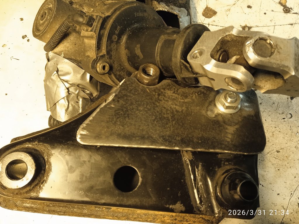 Har även svetsat och gjort slutgiltiga monteringen av servot mot framaxeln. Mycket testade och prov innan alla vinklar blev bra. Jag fick luta servot den aningen framåt/neråt för att den skulle gå fritt mot oljetråget och samtidigt få plats vid urkapningen kring rattaxeln Härnäst blir det fixa ett nytt motorfäste. Målbilden är att köra på mittsverige 1 maj.
