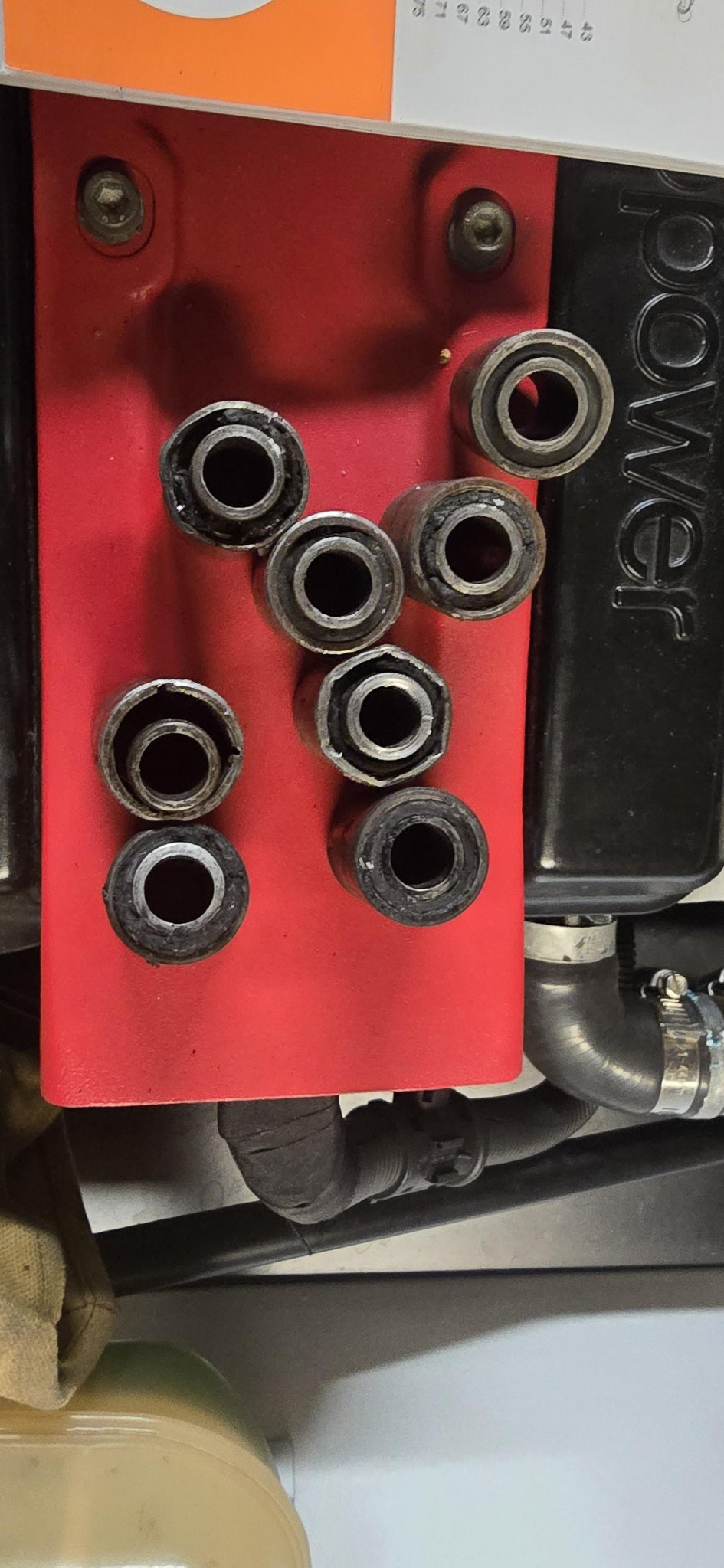 Hydraulpress har jag funderat på, men Julas lilla har sprungit iväg i pris. Tänkte höra med lokala Miataverkstan om de kunde pressa ut de, men... ..en ute, sju kvar.