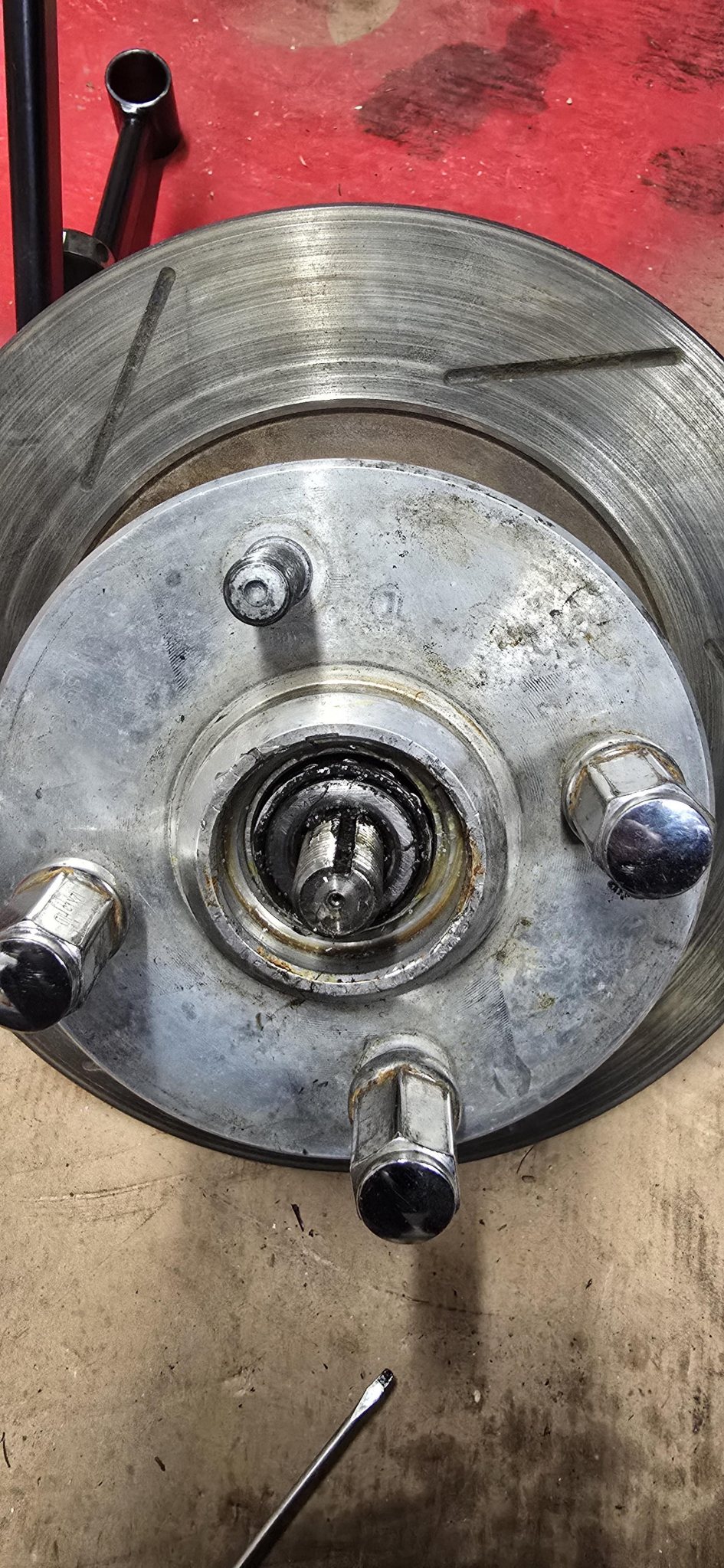 "-Jo, eh... jag ska... bara...." Men vi börjar från början. För nåt år sedan bytte jag ett hjullager som blivit dåligt bara sådär, det andra har alltid varit bra men när jag ändå är där och rotar...