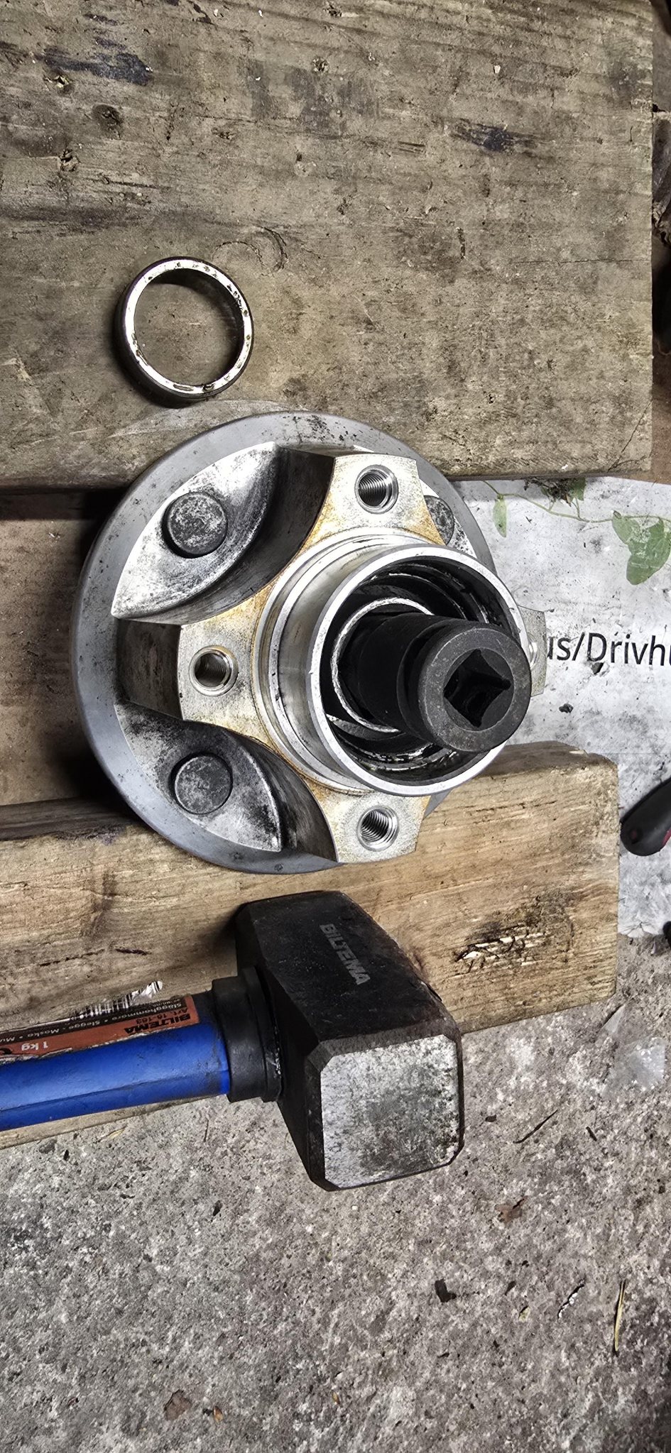 Figgz har en otroligt bra guide för hur man byter hjullager, men jag fortsätter att förlita mig på ogräsbrännaren för att få värme och sen hylsa i hylsa och bankande. Enkelt på ena siden, värre på andra.