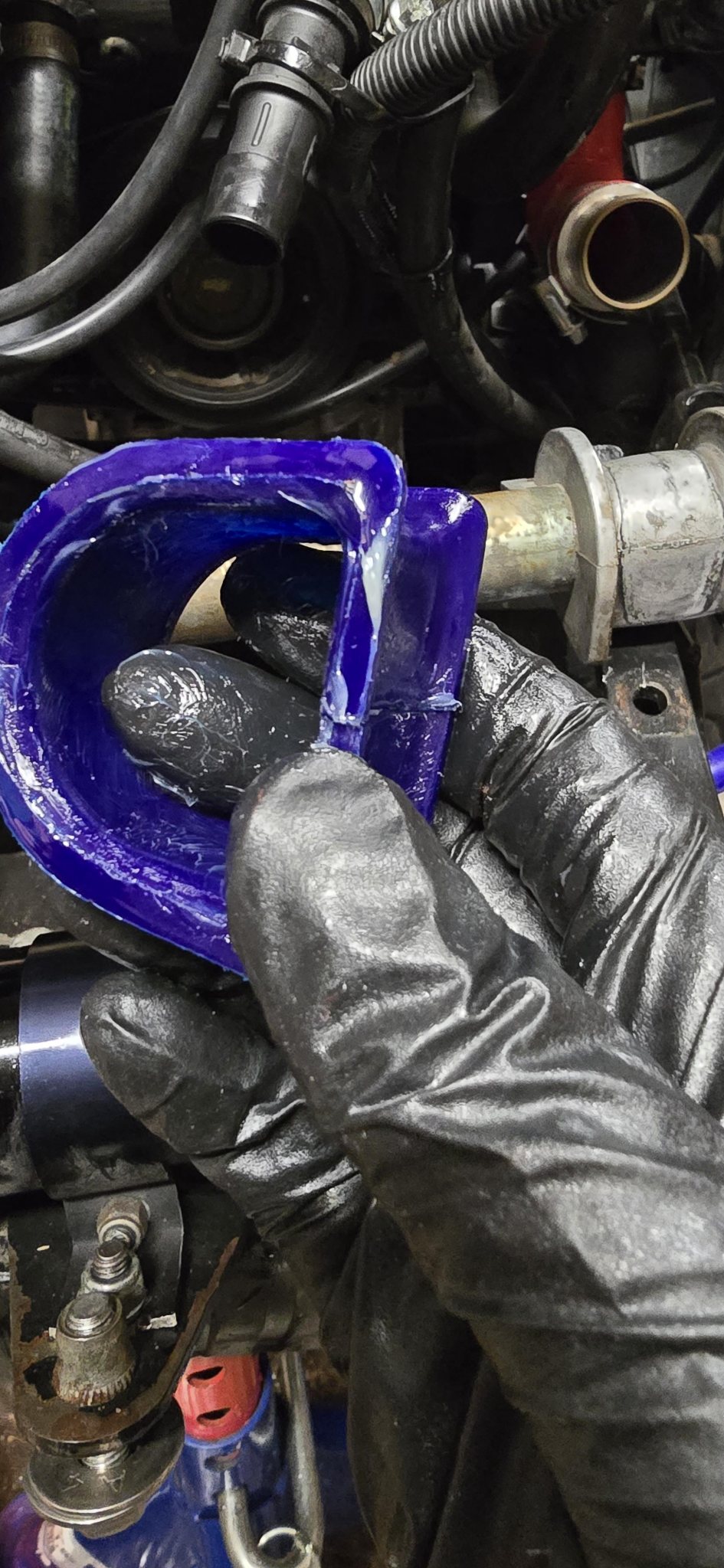 På Facebook får jag upp en sjuk mängd kattvideos och BBQ-videos när folk röker kött. Ska man röka kött ska man tydligen ha svarta nitrilhandskar, men det duger till annat också. För ett tag sedan åkte det med bussningar till styrväxeln, bara för att (någon hade skrivit om det på det engelska Westfield-forumet och när jag beställde annat så). Nu när jag är där i närheten och drar i saker kanske det var lika bra att byta? De ska fettas in innan montage...