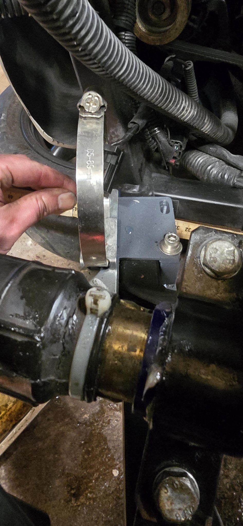 Kapa bussningen med bågfil (utan att röra materialet utanför) så flexar den bättre och kanske kan övertygas lättare?