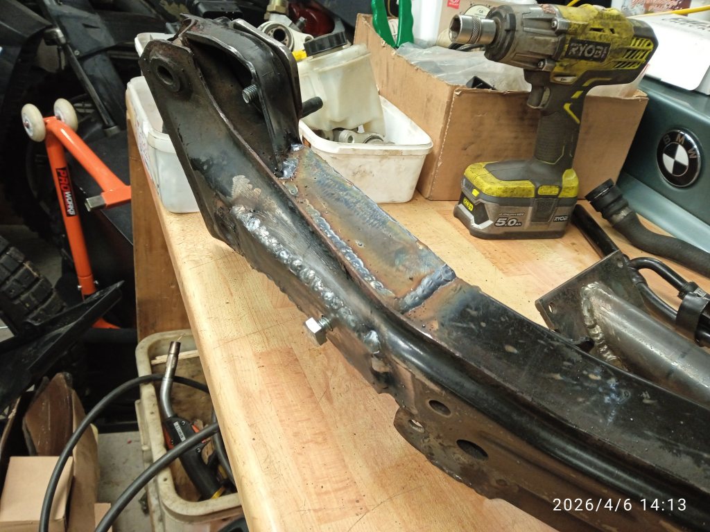 Skall även sätta extra förstärkningsplåtar på undersidan och baktill. Sedan skall jag börja återmontera hela framvagnen. Det börjar bli dags provköra.