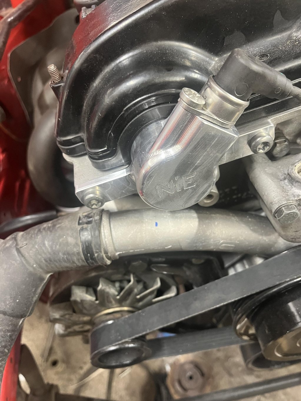Ville ha en luftburk liknande de gamla tävlingsbilar, men med mina spjäll och styrservopumpen kvar blev det en del pyssel.