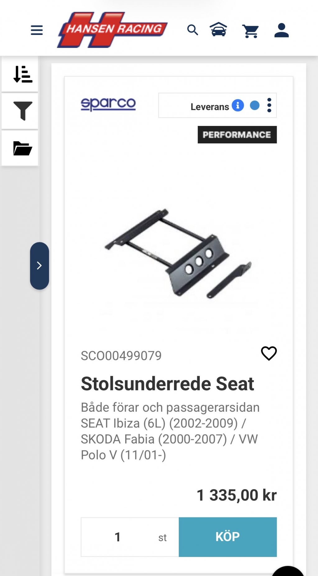 Delarna har suttit i en Polo 6R WRC 2014 Halvbur/skruvbur i Docol R8 Pulverlackerad i solid vit. 5000kr D2 Big Brake kit 330x32mm flytande skivor, 6-kolvsok med dammskydd. D2 Hollow bromsok. 15000kr 2 stycken Sparco stolsundereden Artikelnummer 00499079 1200kr för båda Allt finns i Stockholm/Värmdö (kan skickas mot fraktkostnad).