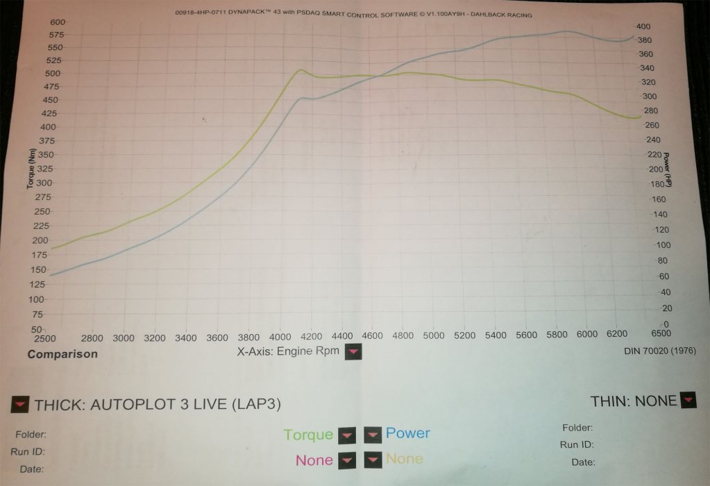 Enligt tråden 390 whp @ 6000 rpm och 510 Nm @4100 rpm