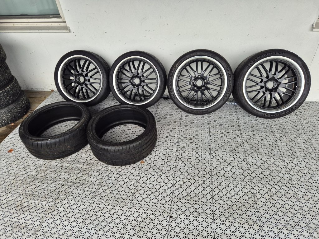 Victor Equipment fälgar 5x130: 8x19 tum fram 11x19 tum bak Michelin Cup 2 däck: 245/35ZR19 fram ca 4-5mm (lösa, måste monteras på fälgar) 295/30ZR19 bak ca 6mm Vet inte så mycket om fälgarna , Jag köpte dom för att ha på min rejs boxster(986) men de passade inte på den så jag säljer dem vidare. Pris 6500:- för allt i befintligt skick. [/img] _________________ 1Peter Stangmo1 Porsche Boxster S Race -03 |