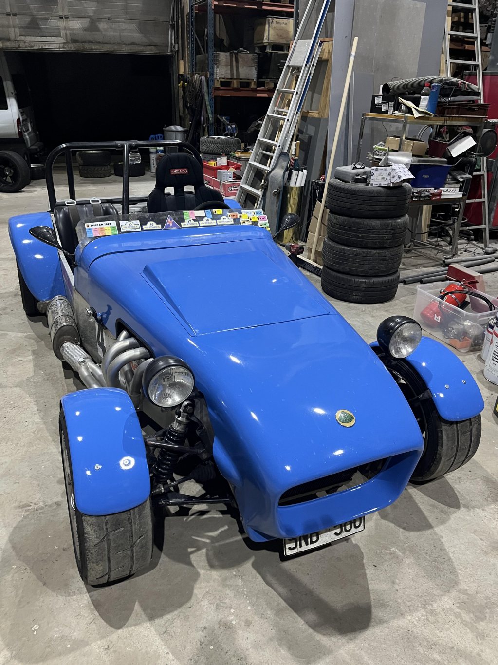Sevenbygge gatreggad men mest gått på bana. En vinnarbil i Roadsport B Klassvinnare i MSCC klubbtävlingar 50.05 på Falkenberg Volvo 360 drivlina med 5vxl transaxel och dionaxel. Motorn uppgraderad till B230 Billig och säker i drift Prisindikation 90000kr