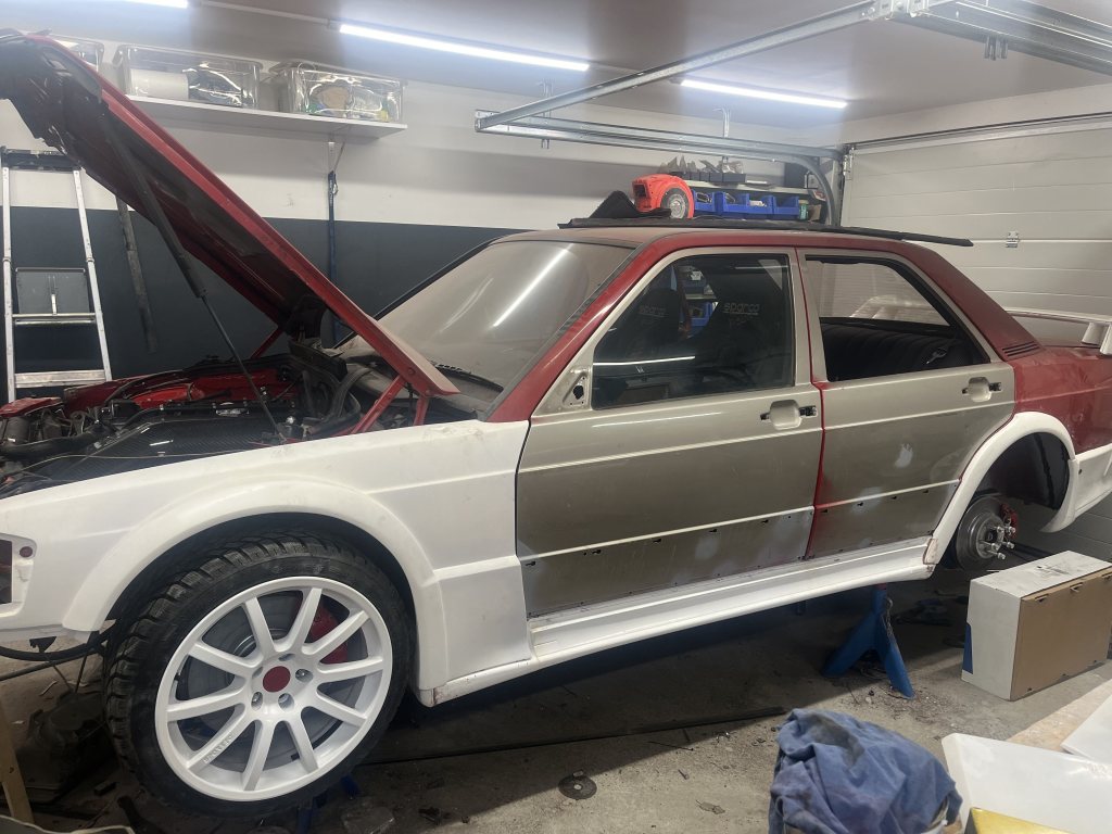 Det är en del plåtjobb om hjulen ska få plats där dom ska vara!
