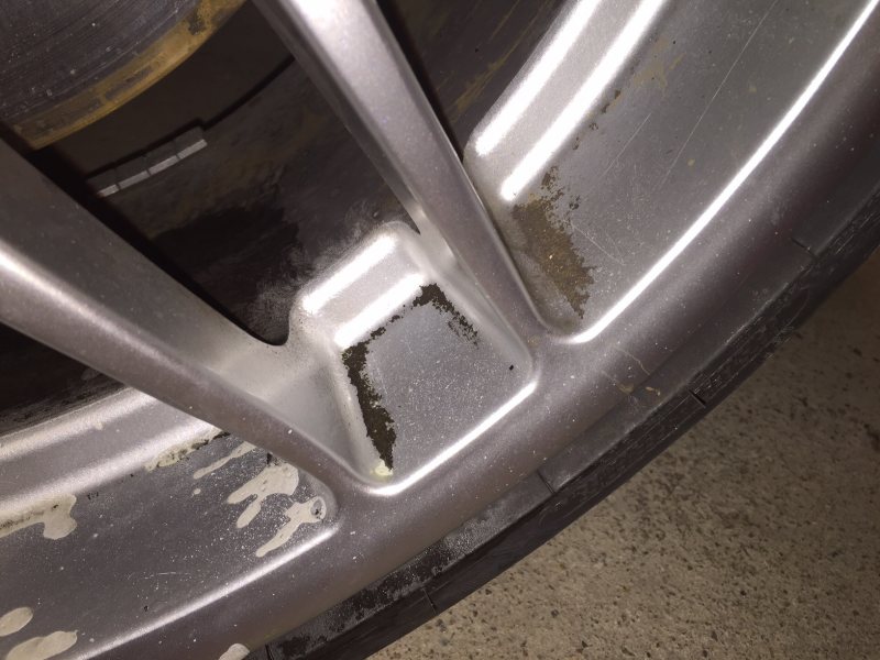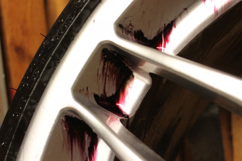 På mina fälgar var det en blandning av asfaltstjära på insidan, gummirester och bromsdamm i hörnen.