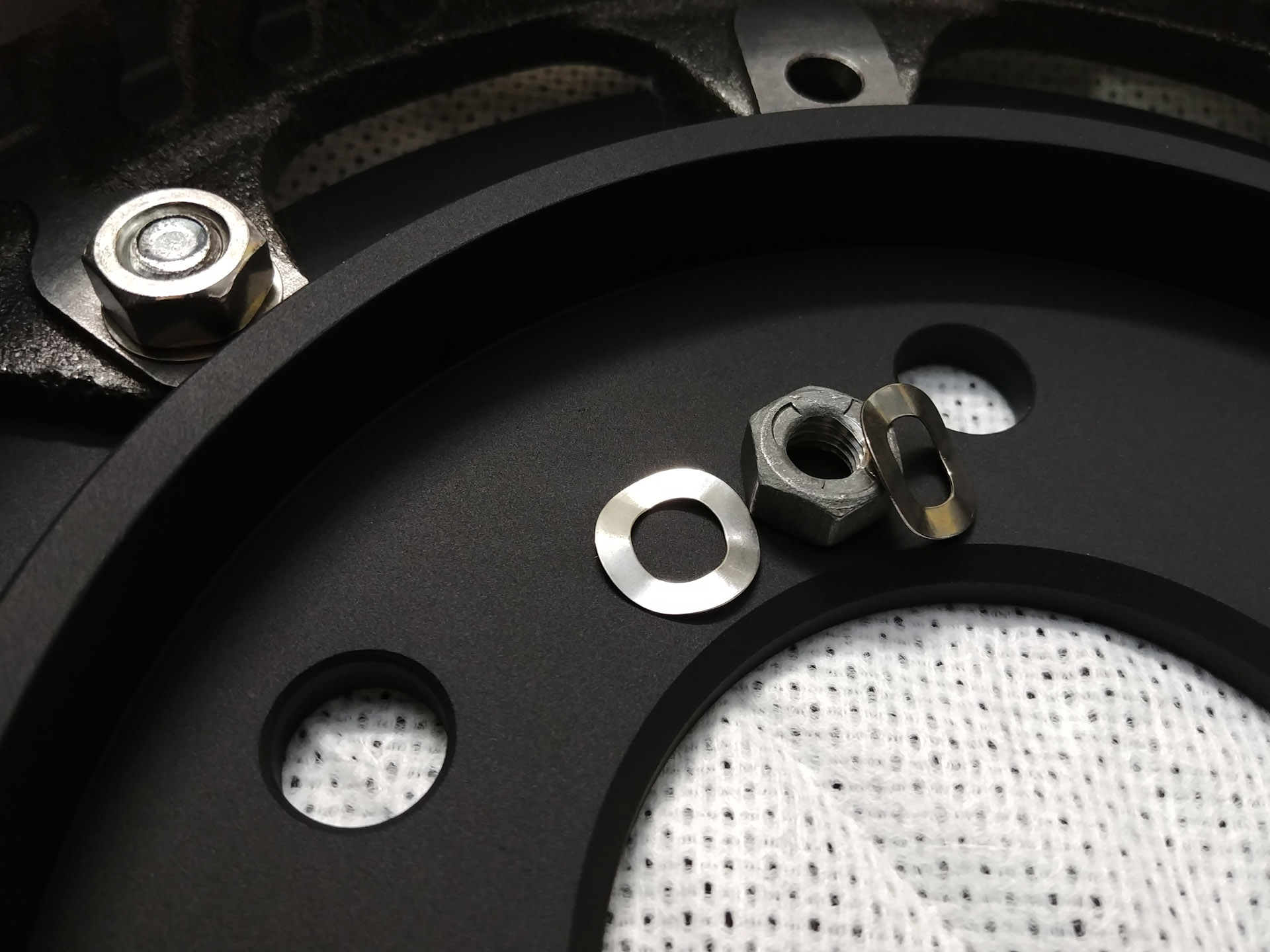 Kommer putsa till adaptern och navet lite, glasblästra rent och dra på lite värmetålig färg eller ev lämna iväg på anodisering.