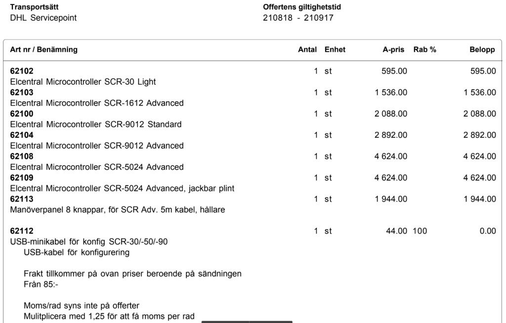 Jag skickade mail nu till Awimex och fick priserna på deras olika enheter, dom ni hittar i länken: