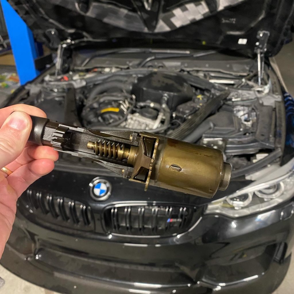 Efter mycket googlande osv pekade misstankarna på valvetronicen. En motor som sitter på toppen och justerar insugsventilerna efter signal från gasspjäll hur mycket och lite de skall öppna. Drevet på denna motor hade troligen blivit slitet och kuggade över. Det verkade som att den "dött" i stängt läge och därför bilen gick så dåligt. Oftast byter man axel också då det drevet också tar skada. Inga billiga grejer och eftersom vi inte visste säkert, var planen att börja byta valvetronicen om övriga delar såg bra ut. Jag kollade runt med alla, Bmw Sverige, Jmb, Stertman. Restat överallt i minst 2månader. The Crown på ringen kontaktades och de kunde lösa en med över-natten leverans från Japan. Den nya valvetronicen anlände och Andy (Imovate) bytte den. Drevet på axeln hade inget synligt slitage, knappt heller den gamla valvetronicen. Men nu startade bilen. Provkörning och allting lirade. En diffusor bak monterades för att komplettera utseendet på bilen. Sedan kördes bilen hem och hjulinställning hos GT Däck i Kävlinge utfördes efter värdena från Emerson. En sak jag retat mig på är att man inte kan synka klimatzonerna i bilen. Därför köptes en ny klimatpanel hem med endast enkelt tempvred utan zoner, precis som i M4 GTS. Tyvärr gick det inte att justera graderna och fläkten gick endast på en hastighet så den gamla sattes tillbaka. Man måste byta hela värmepaketet för att det skall fungera tydligen. Då alla högtalare och slutsteg är urplockade hördes inga varningar från bilen. En vän hjälpte mig att koppla in en enkel högtalare i mitten på brädan och kodade in den. Vilket kändes viktigt att ha. Nu stod bilen klar, den var finare än ny. Alla hjärnspökena jag haft som: tänk om bilen inte går rakt eller tänk så är den si och så, eliminerades. Det märktes inte att den varit krockad och reparerad. Dottern ville självklart provsitta "racerbilen". Kommande helg var det dags för Ljungbyhed och "För en bättre dag" för barn som fått en tuff start i livet. M4an var mycket populär bland barnen som stod på kö att få åka med trots att där var många mycket mer exklusiva bilar såsom Koenigsegg, Lamborghini mm. Bilen kändes riktigt bra och levererade massor av glada miner och lovord.