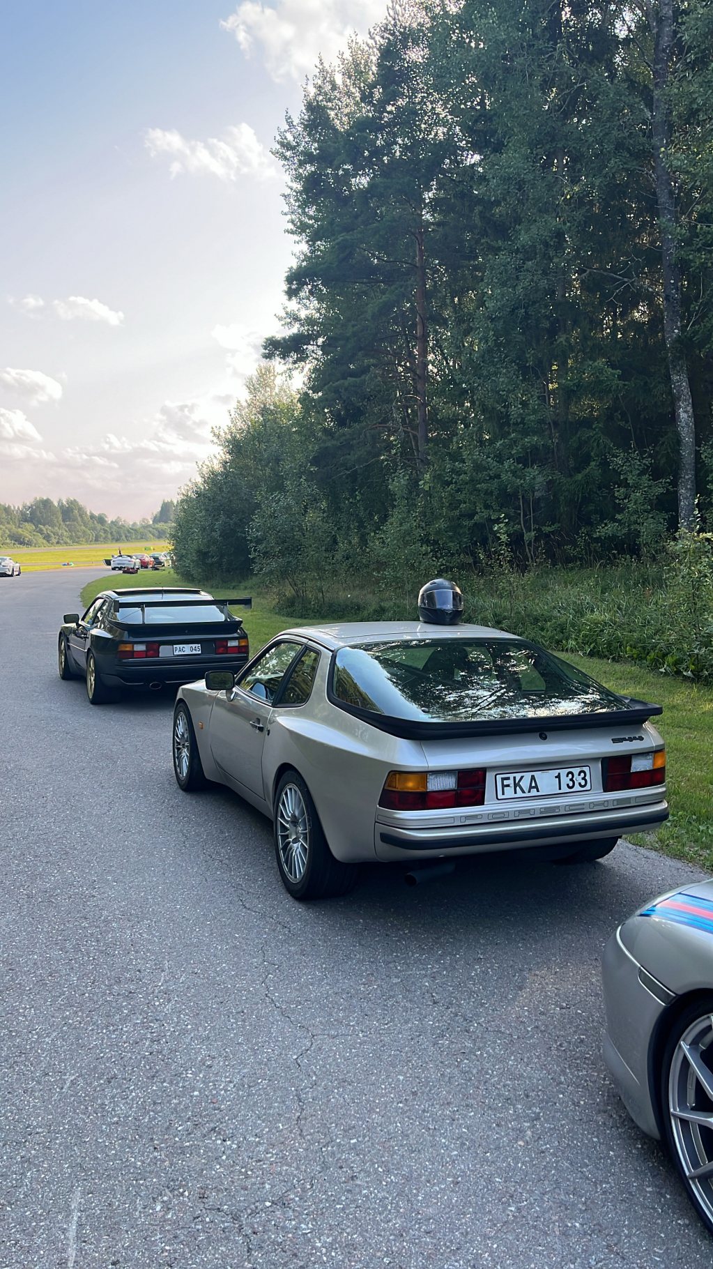 Om mig: Jag heter Melvin, bor i en förort norr om Stockholm och är något yngre än detta forum... På dagarna håller jag till på Teknis, där jag pluggar för att bli civilingenjör i farkostteknik. Om bil: Porsche 944 -84 Zermattsilver med svart inredning 2.5L I4 163 hk/205 nm, 5vxl manuell med öppen diff --------------------------------------------------------------------------------------------------------------------------------------------------------------------------------------------------------------------------------------- Spec 2024 ![]() ![]() Drivlina Original, motor renoverad vid 19000 mil Bromssystem Hawk HP+ belägg runt om Ventilerade skivor Stålomspunna slangar Chassie GAZ GHA coilovers runt om GAZ camberplattor 375 lb/in fram 250lb/in + 23.5mm torsion bak Weichers Sport fjäderbensstag Inredning Weichers Sport skyddsbåge Sparco Evo L stolar på hembyggda fästen Apex 6p-bälte på förarsidan Apex sportratt med kina-snapoff Externt Original Stenskott ![]() Däck/fälg 9x17 ATS DTM med 225/45R17 Goodyear Eagle F1 Assymetric 6 till gata 7.5x17 + 9x17 Porsche Cup 2 med Pirelli Trofeo R till bana Att göra 2025 Byte växellänkage, bort med allt gummi och ersätta med uniballs Styvare fästen till motor och växellåda Byta till linjär throttle cam Ta bort snapoff - annan rattspacer hittad Montera 944T krängare bak - samtliga delar inköpta Montera plastbussningar i främre bärarmarna - inköpta Bygga om fäste till passagerarsäte med glidskenor - söker skenor Splitter DP motorsport - väntar på upphämtning Vinge 968 CS - väntar på lack Renovera bromsok Dekaltrim ![]() --------------------------------------------------------------------------------------------------------------------------------------------------------------------------------------------------------------------------------------- Biltråd är kul, kul är roligt. Här kommer jag att lite då och då dela min och min bils lilla resa fram tills nu, och in i framtiden ![]() Hösten 2011 var jag 6 år gammal, och mina tre största intressen i denna värld var dinosaurier, lego och ett tv-program vid namn stora maskiner, där maskiner som gaffeltruckar, kranar, grävmaskiner och annat coolt visades upp. Far min gillade också motorer, men i mindre format: han hade haft Porsche-feber sedan barnsben, och nu var det dags att slå till. En dag kom han hem med sin drömbil, nämligen en 996 Turbo i Guards Red. Den var bra mycket coolare än gaffeltruckar, och hans feber smittade mig fort. ![]() Satan vad cool jag var med den. Spola fram elva år, till 2022, och ett par 911or har kommit och gått i pappas garage, men nu har han stannat vid en 991 Turbo S och för att köra slalom med PCS. Var och varannan lördag far han iväg till Lunda flygfält och kör. Tyvärr hade mitt intresse avtagit lite, men av en händelse följde jag med på en tävling, och fick till och med köra ett väääääääldigt lugnt varv under fri träning när alla bilar var klara ![]() ![]() Febern var tillbaka, och nu började jag dessutom närma mig 18 år fyllda(KÖRKORT ![]() Porsche är ju lite synonymt med bakmotor, 911 och allt vad det är, men jag har alltid haft en extra kärlek för 924/944/968-serien. Det finns något så perfekt retro med de, och på den vägen blev det. Jag började leta, och en sommardag i förra året blev jag ägare till en Zermattsilvrig 944 från 1984. ![]() Precis lika nöjd 12 år senare. ![]() Glömde lite bort att ta körkort innan jag köpte bilen.... ![]() Den 11e augusti 2023 körde jag min första slalomtävling, och hade magiskt kul. Kanske vissa som känner igen vems bil jag står och dreglar över här ![]() _________________ Melvin Lindholm @veryslow944 på Instagram Porsche 944 -84 |