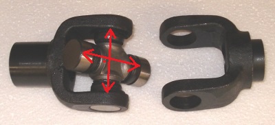 Växellådan ligger helt i våg med bilen, medans bakdiffen sitter neråtvinklad c:a 0,6° vilket borde vara försumbart? Det var lite svårare att mäta vinkeln i sidled. Gjorde såhär: Fäste två 650mm långa fyrkantsprofiler på vardera axelfläns och mätte avståndet mellan ytterändarna på profilerna. Skiljde totalt 4mm i längd mellan höger och vänster sida vilket ger ett vinkelfel på 0,35°. Däremot har jag ett märkbart radiellt glapp i kardanknutarna. Går att skjuta lederna någon mm åt varje håll längs med pilarna på bilden (lånad bild). Inga övriga glapp finns i axeln. Knutarna är av "1300 series" typ. Bara att byta knutar och montera tillbaka, eller bör jag försöka se över de små vinkelavvikelserna också? Kardanen snurrar med 9500rpm vid varvstopp (8000rpm) på 5:an. (0,845 utväxling).