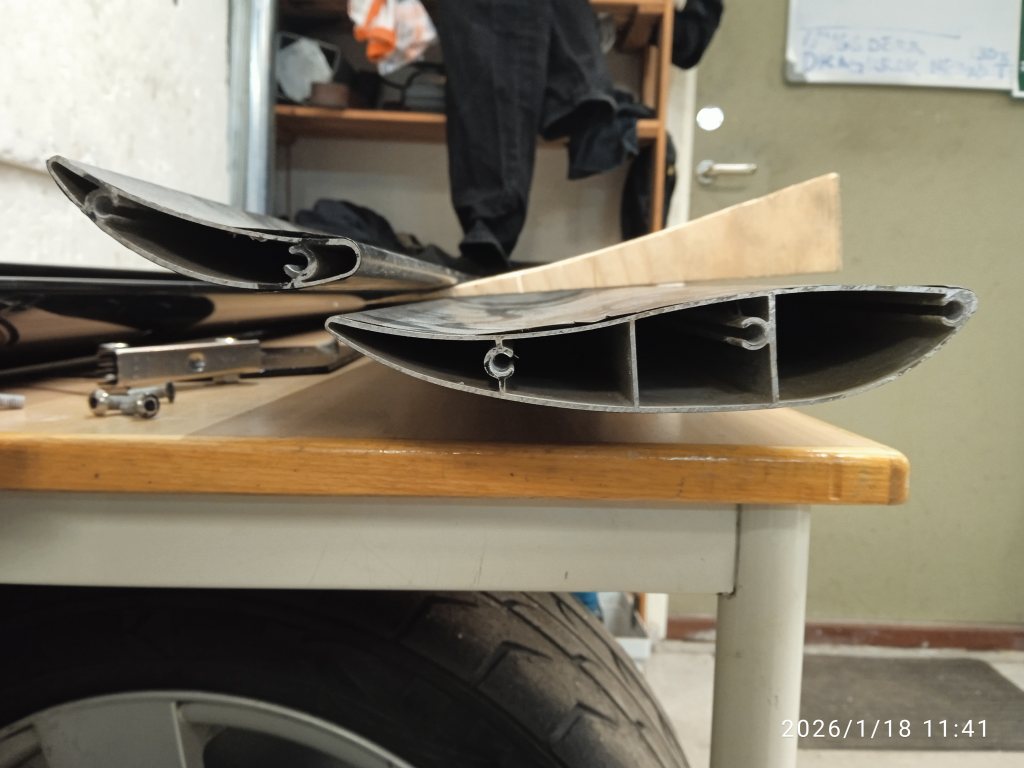Nya större vingens profil. Jag har läst på kring dessa "ebay vingar". Dom fungerar om man monterar dom vettigt och ställer in vinklarna, Men vingar i samma storlek och framtagna för racing på amatörnivå ger upp till dubbelt så mycket downforce just pga bättre utformning. Men förutsättningarna är samma. Man måste mäta/justera vingar. Att montera och tro fungerar (oftast) inte.