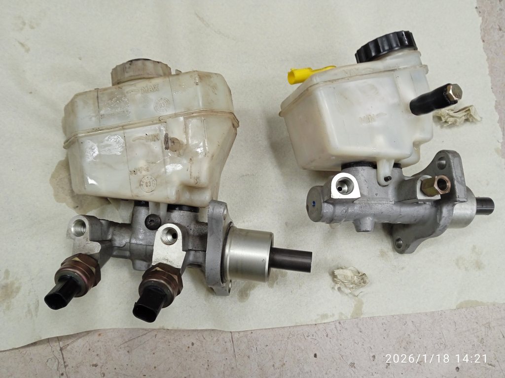 Provmonterade även nya huvudcylindern, satt på Z4. Passade fint, förutom nippeln till bakbromsen var M10 och gängan i HC M12. Nya till höger med tryckgivare. Behållaren kan man flytta över om man vill.