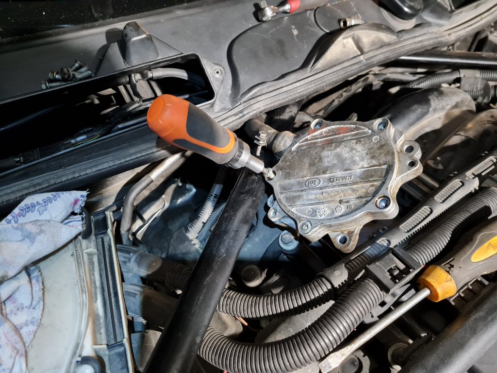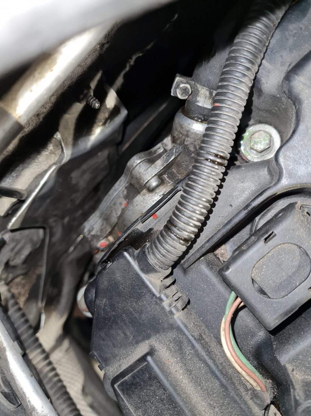 Här nere bakom sitter den lilla läckande gynnaren. Locket till Vaccumpumpen...