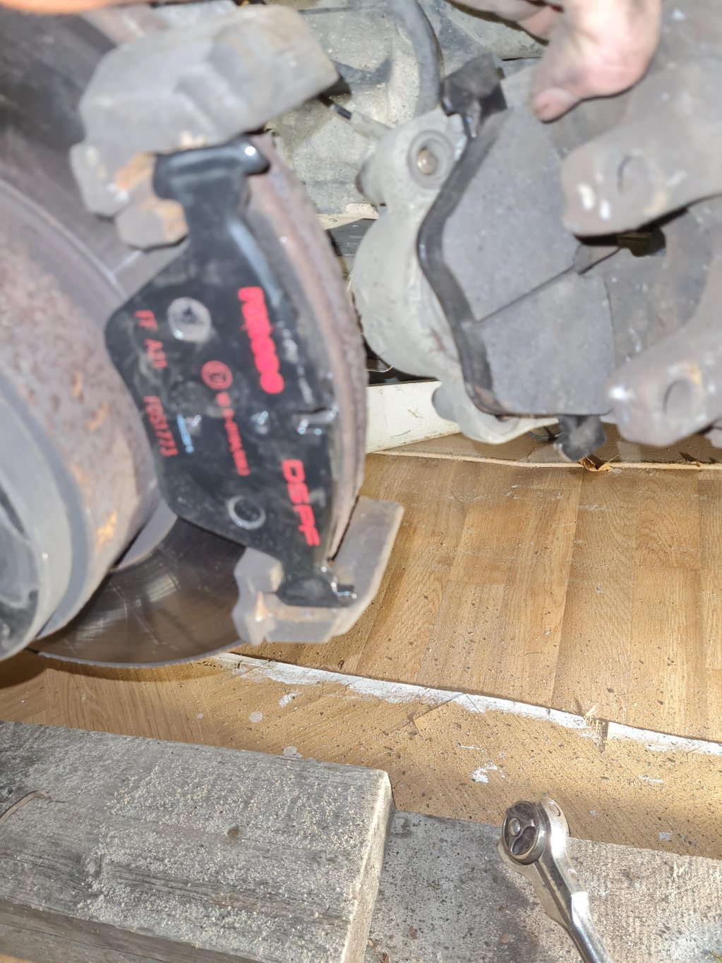 Ferodo beläggen är på. Inget fett och inga skrikdämpande plattor. Får se hur detta blir...