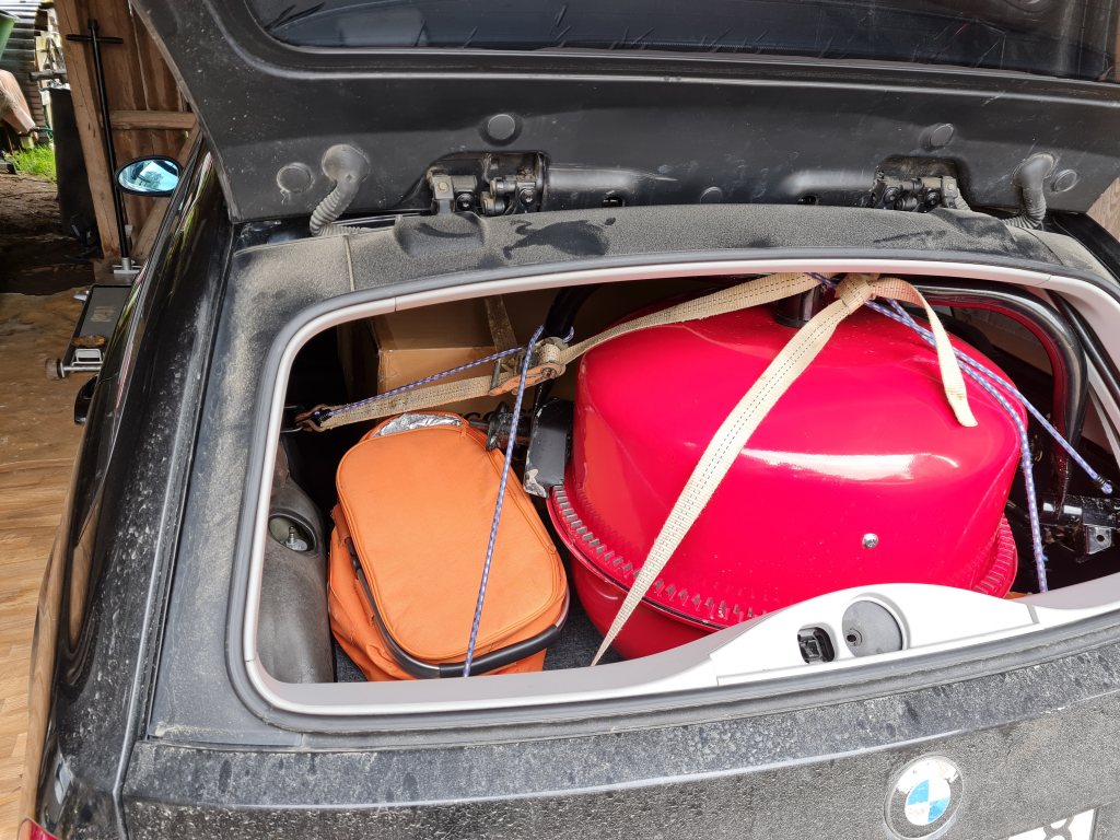 Bilen delvis packad för Falkenberg. Nä det blev ingen badpool denna gången heller, men en cementblandare! :-) Tur man kör kombi...