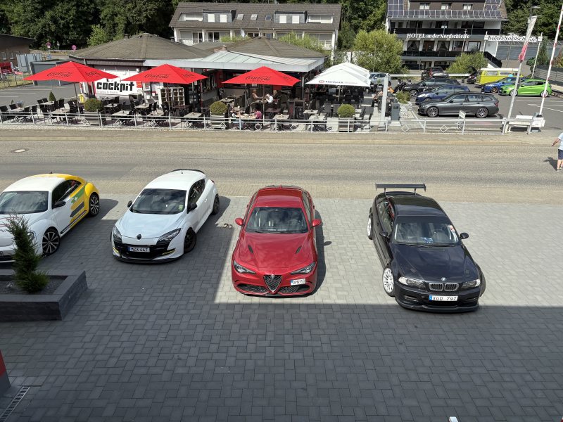 Ännu en svensk manuell Giulia Q på Ringen samtidigt! Osannolikt! En middag med ett trevligt skånskt par blev det.