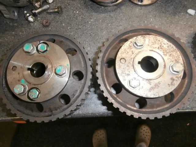 Ah, drevet är redan i två delar. "Vänd" på skruvarna, helicoil i hylsan och slota upp hålen i drevet. Pinnen är väl mest för att man alltid ska sätta drevet på samma position. Värt att tänka på när man leker med kamtiming är ju att kontrollera att ventilerna fortfarande går fritt. _________________ Magnus Wennerberg Porsche 911 Targa -77 (originalish) Porsche 911 Coupe -69 (busbil för bana) Porsche 924 -79 (busbil för gata) Porsche 931 -79 |