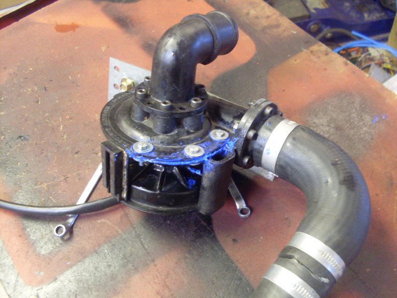Eftersom opinonen var imot mig här :-( Så brände jag ihop en ny version av kylrör. Ungefär som fjolårets förutom allt är gjort i ett stycke. går faktiskt att montera/demontera på plats. Åsikter ? Gjort i 32mm rör vilket är samma dimension som både vattenpump och termostat.