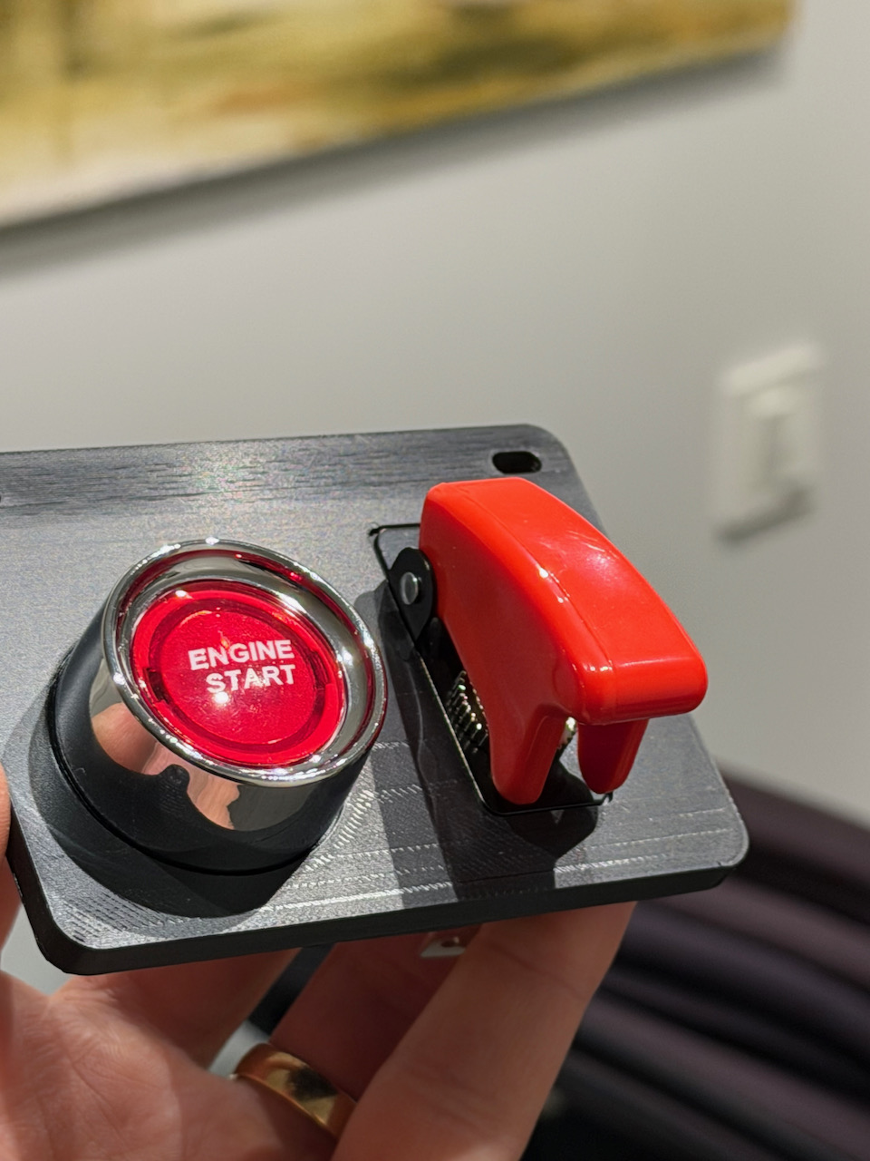 Det blev en söt liten platta att sätta startknapp och tändning på temporärt, så dessa slipper ligga på golvet.