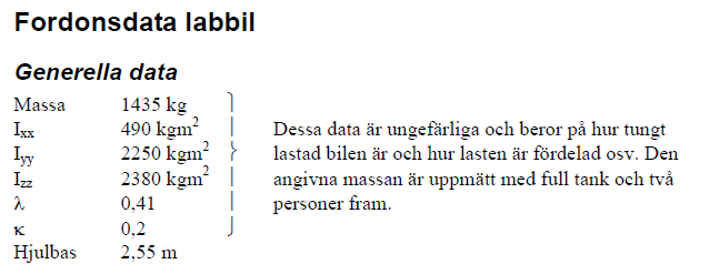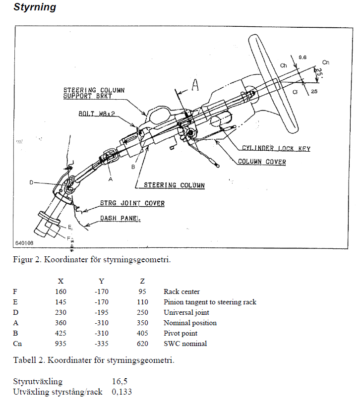 Jag råkar sitta på lite chassi data från första generationens volvo v/s40.