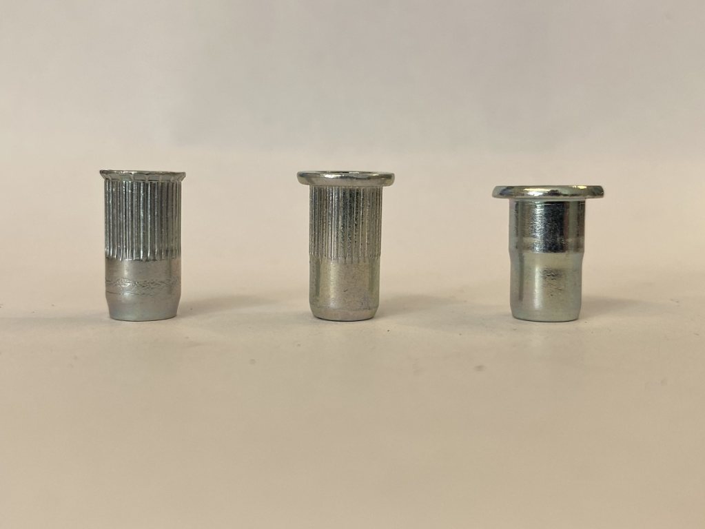 Skaffade också försänkta mutternitar för tunnplåt, RF och vanliga, båda med rillor.