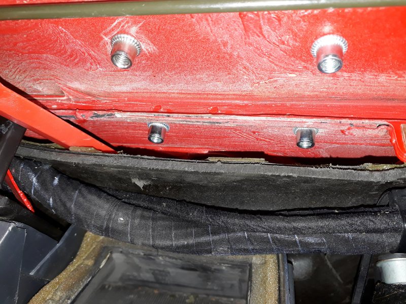 Hade han satt fast konsollen med plåstskruv så hade den ramlat loss vid ett olämpligt tillfälle och orsakat problem. Fördelen med mutternit är att man kan köra Loctite och rimligt moment och få nått som faktiskt sitter kvar.