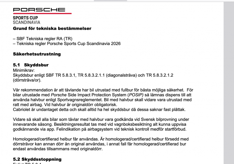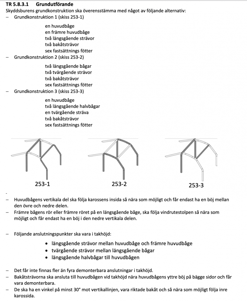 Så långt in i det Tekniska Reglementet har jag inte läst, jag får hoppas på att det går igenom ändå då jag följer Pcsr's minimi-krav för "5.1 Skyddsbur" ;