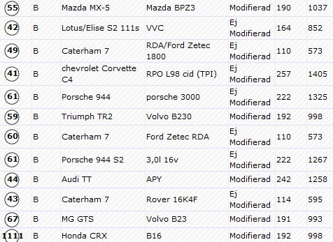 Som sagt det är ett förslag och syftet med tråden är att ge input till vs 2013 av nyare/mellan klassbilarna