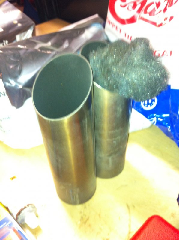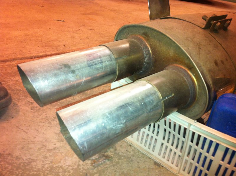 Jag lägger in förhoppningsvis självförklarande bilder på hur jag löst mitt ljuddämpande med utbytbara ändrör. De rör som sitter i systemet är mina yx-ljuddämpningsrör. De har en bult sig tvärs igenom och bakom ett vinkeljärn från Bauhaus. Bakom det stoppar jag, om behov finns, stålull. Detta har varit lite i överkant ljuddämpande, särskilt efter att jag satt på en andra ljuddämpare längre in på systemet. Min bil blir i maxljuddämpandeläge tyst som en Nissan Micra.