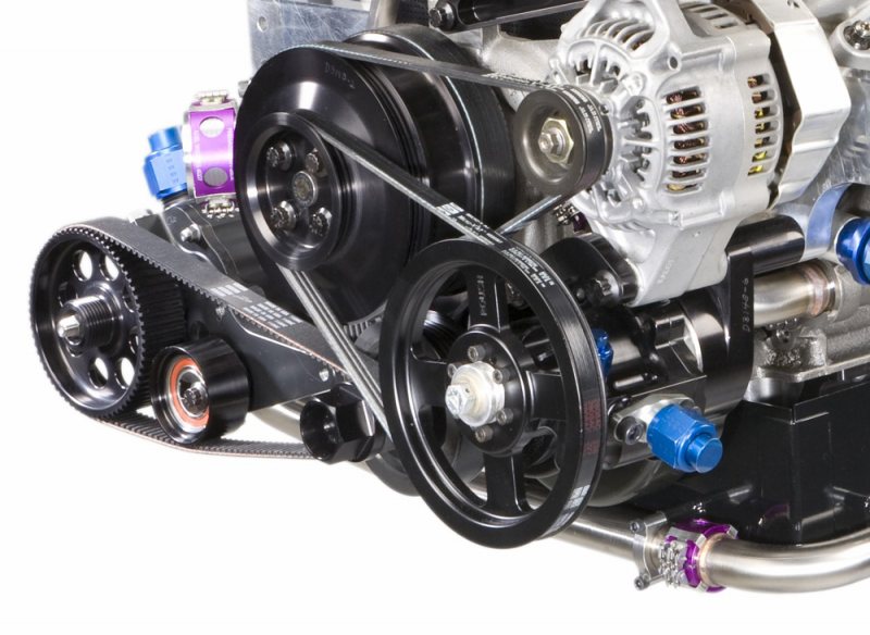 Jag har 1.75:1 i utväxling i dagsläget. Har googlat lite motorer i helgen, och generellt verkar de stora pojkarna (nascar och andra V8-serier) ha betydligt högre utväxling än så. Tittar man på motorn nedan är mitt drev på torrsumpen mycket mindre. Det ser ju snarare ut som 3:1 med tanke på det lilla drevet på veven. Visserligen befinner de sig nog på ett genomsnittligt varvtal som är betydligt högre än min motor, men det bör ju inte påverka saken. Tillverkaren listar inte ens en e-mailadress på sin hemsida.