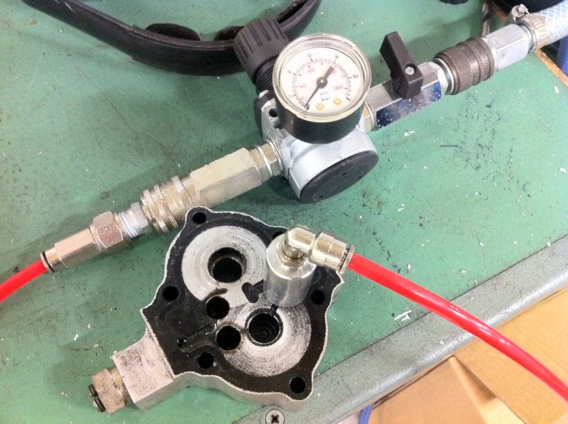 Det var lufttätt utan problem, inte en tillstymmelse till pys. Mjuk och fin rörelse också, inget som kärvar - höjde man trycket lite, rörde sig kolven motsvarande. Någonstans vid 4 bar ungefär öppnade fjädern som den skulle. Lägre inställning resulterade i öppning vid två bar ungefär och högre inställning gick öppnades den inte vid 8 bar (vilket var maxtryck i systemet där den provades). Med andra ord funkar det precis som det ska.