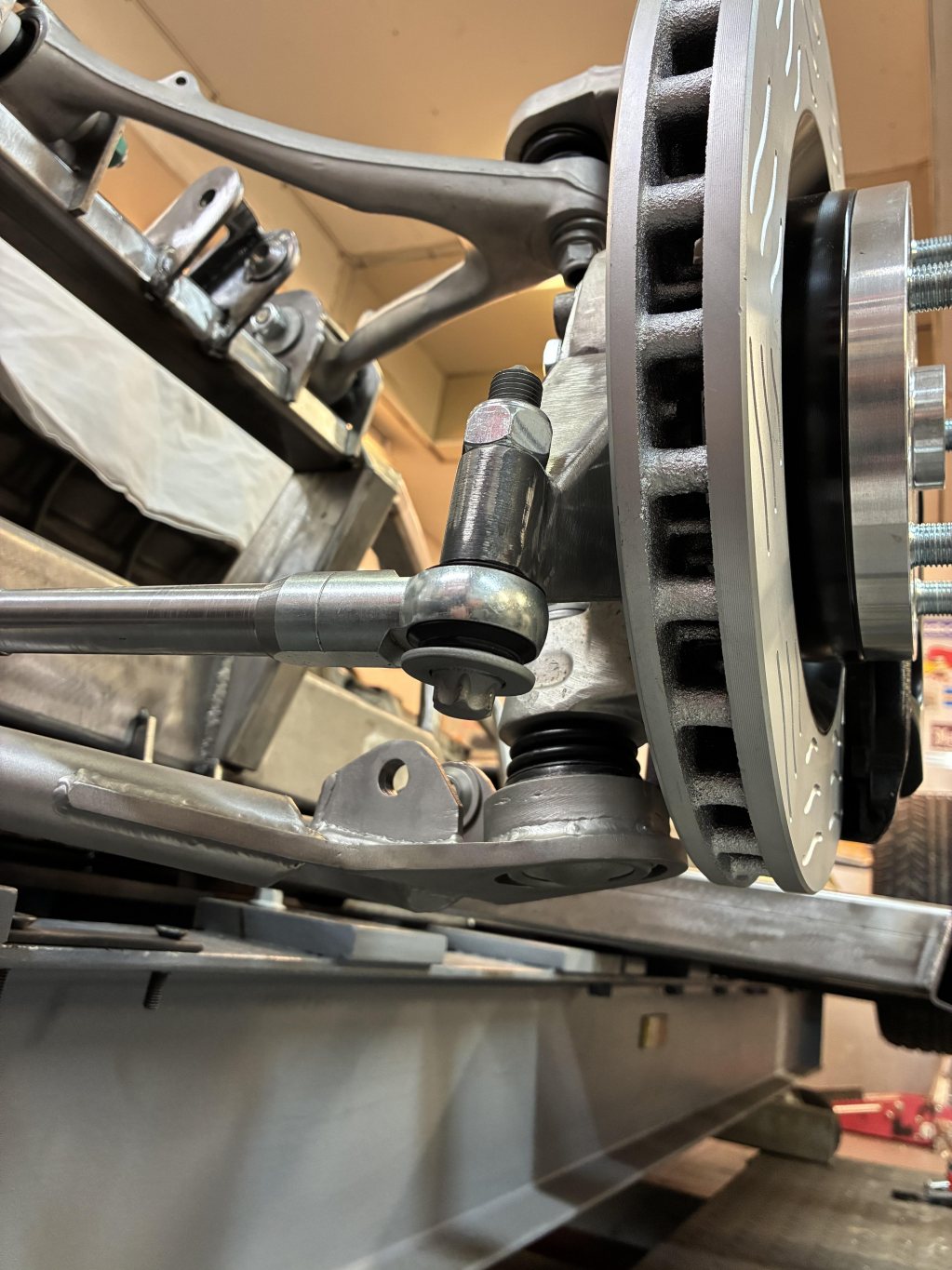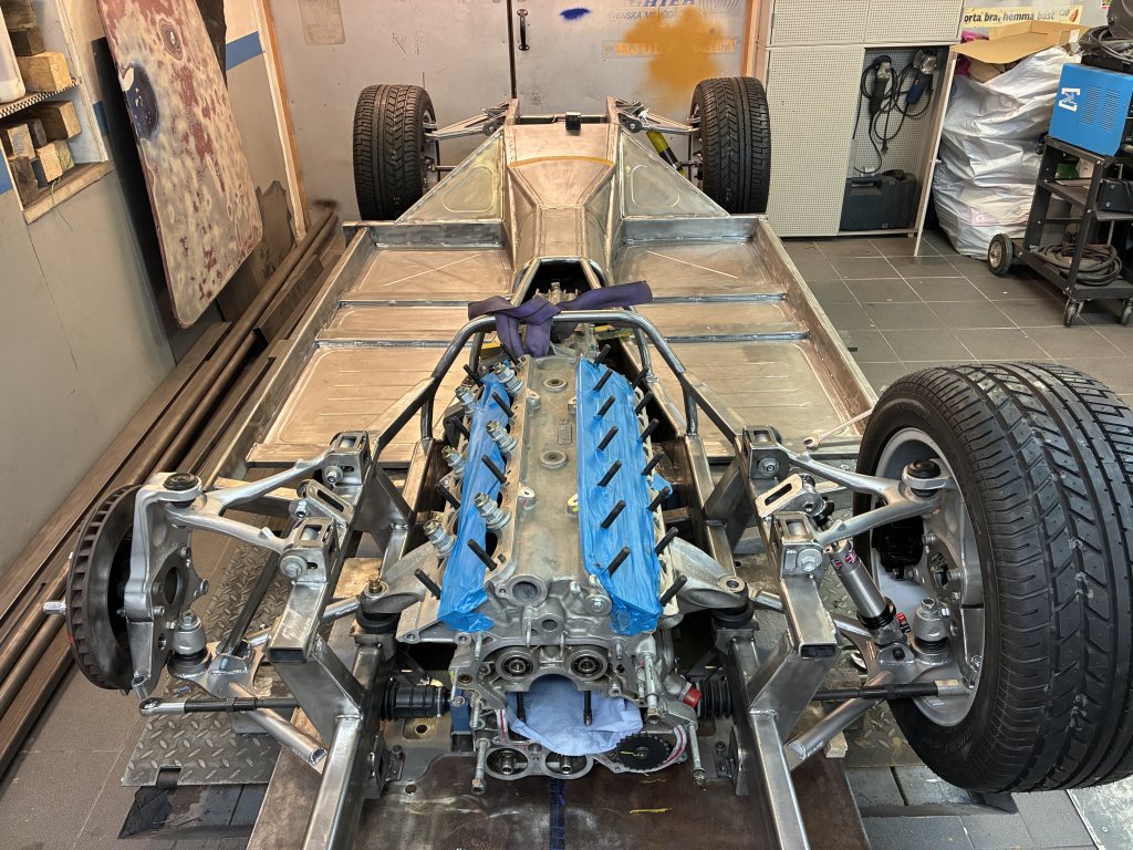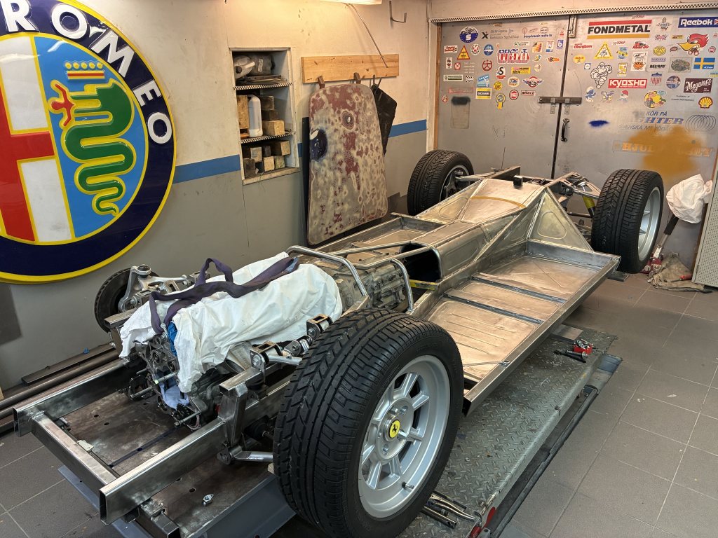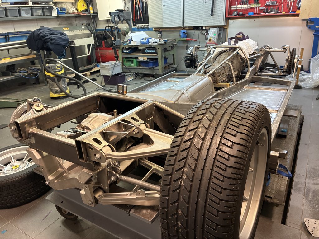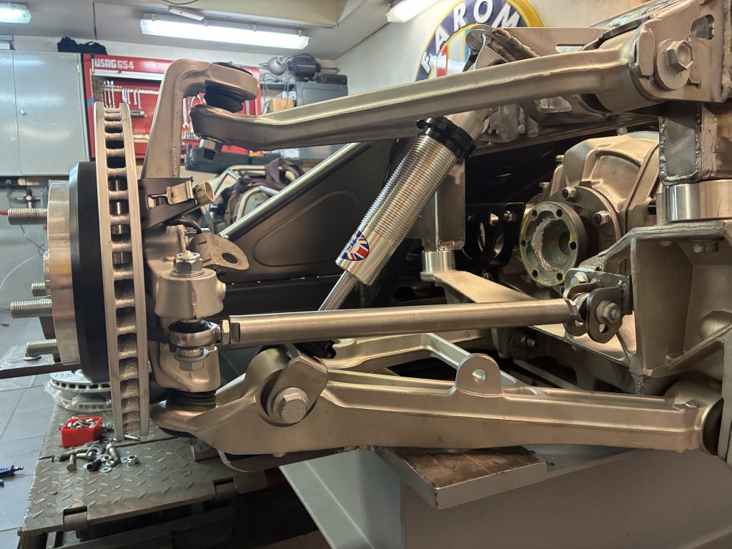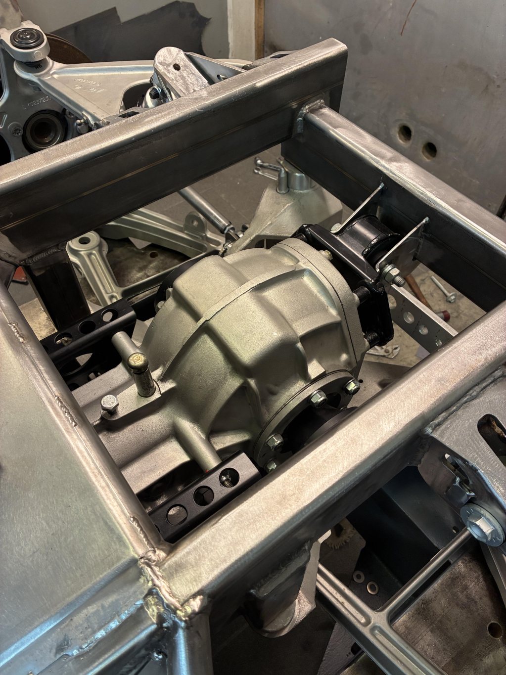 Några timmar till på bygget, ser nästan ut som sist dock. Insåg att jag tyckte att diffen hamnande för högt i bakvagnen och bestämde mig för att dels sänka bakre subframen och även sänka ner den ytterligare i själva bryggan. Oavsett massa jobb för att komma tillbaka till punkt 1. Beställde även en uppsättning protech dämpare till bakvagnen som monterades up side down och fick en ny nedre infästning tillverkad.