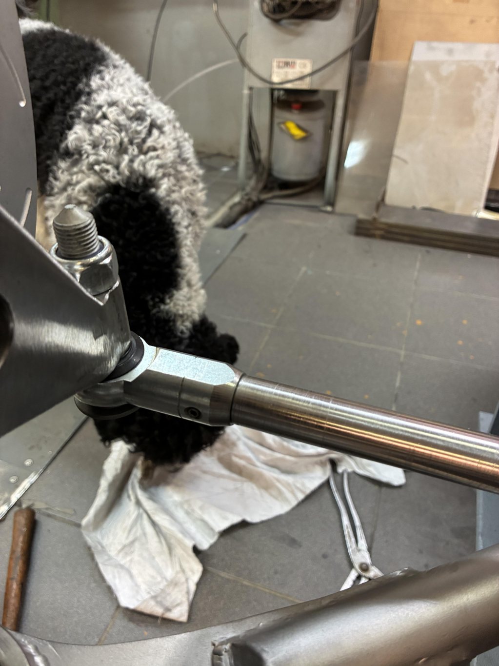Idag har jag korrigerat/uppdaterat styrledlösningen med låsning i yttre p-ända, tätningar till uniballs och kontramutter. 8 månaders storpudelvalpen hjälper till som brukligt..