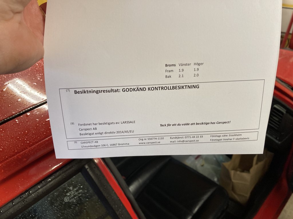 I fredags åkte jag in på efterkontroll och bilen gick igenom! Denna besiktningsmannen förstod inte riktigt problemet som de andra sett, han frågade "triggade de igång varandra eftersom de var tre stycken?".