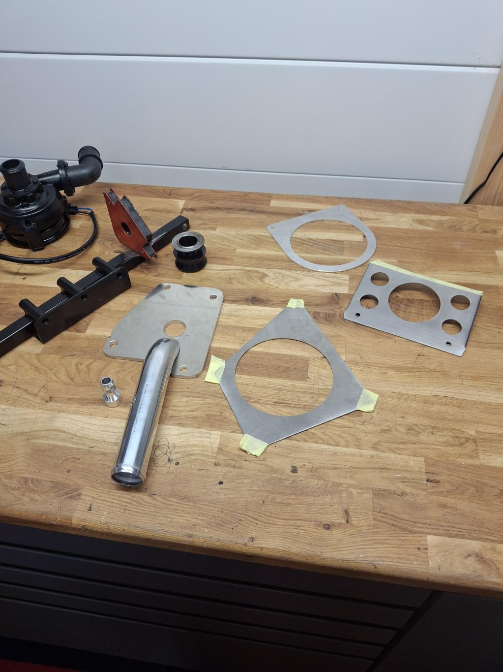 Veckans Leverans av laserskuret. Övre/undre plåt till oljetanken, fäste till exp kärl och delarna till min nya vattenpump.