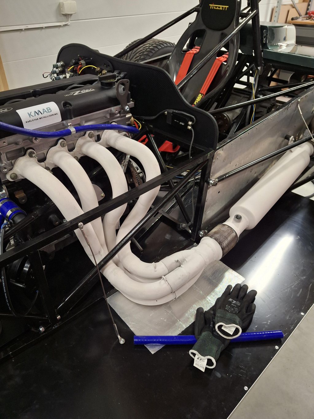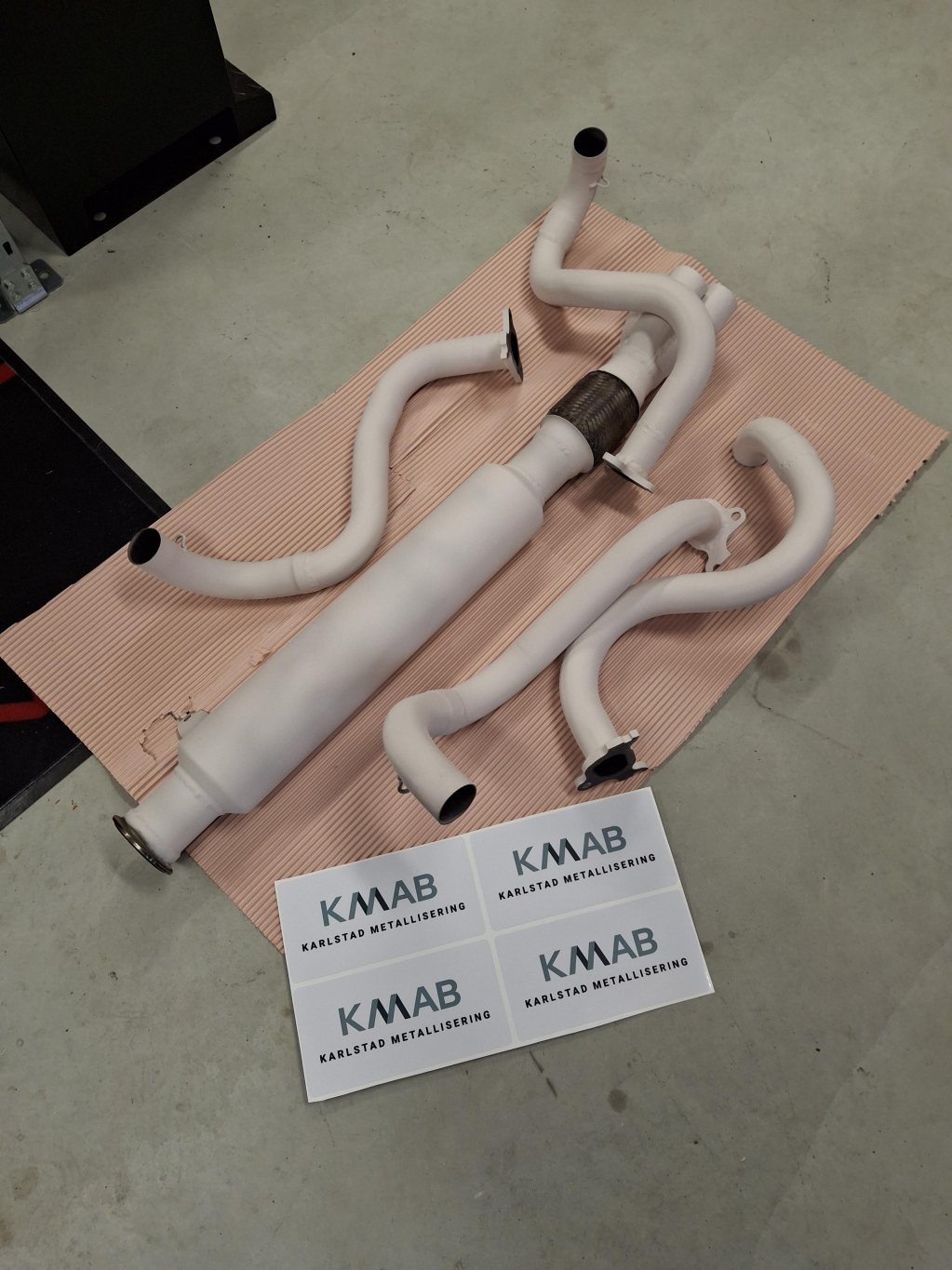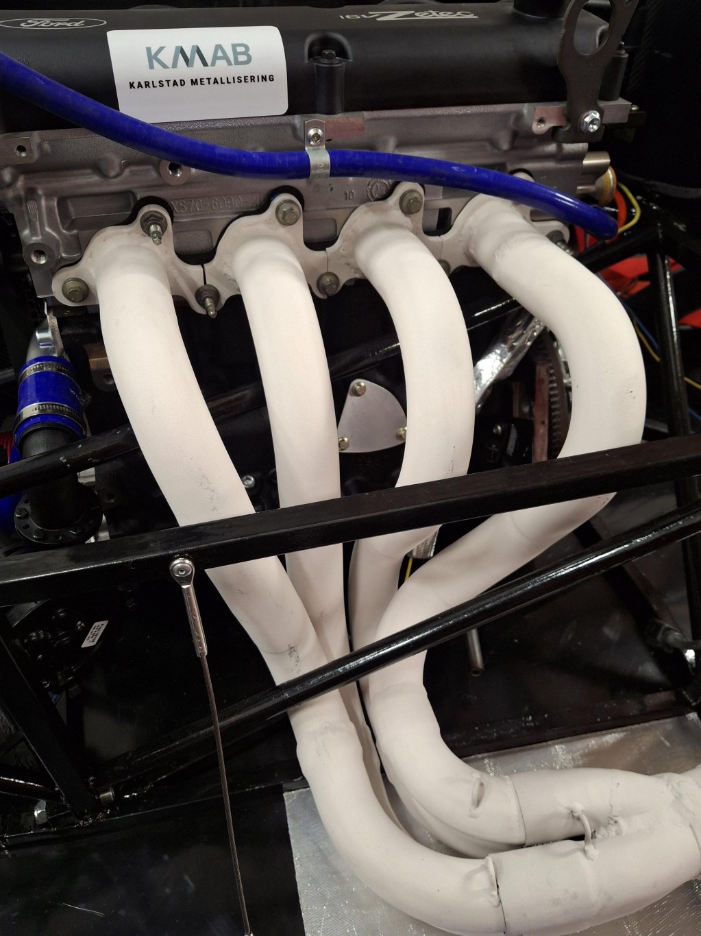 Karlstad metallisering AB Dom har coatat mitt grenrör med någon dundercoating. Tål upp till 1200 grader, sprutades på vid 2000 grader. Silikat. Efter jag har utvärderat hållbarheten på detta så är väl tanken att dom skall erbjuda detta till alla, om allt går som tänkt. En annan nyhet är att bilen kommer stå utställd på Motorsportsalongen 21-22 Nov, så kom gärna dit och sparka däck. SPVM-Montern.