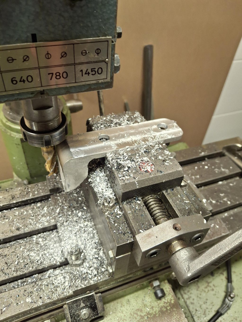 Spände upp en skiva i fräsen och lyckades på något konstigt sätt fräsa upp ett nytt bultmönster som blev RÄTT tyvärr bygger skivan någon millimeter för mycket inåt, finns en idé om att göra en spacer att montera mellan nav och skiva, då centrumet på skivan är större så den behöver styrning ändå, vi får se.