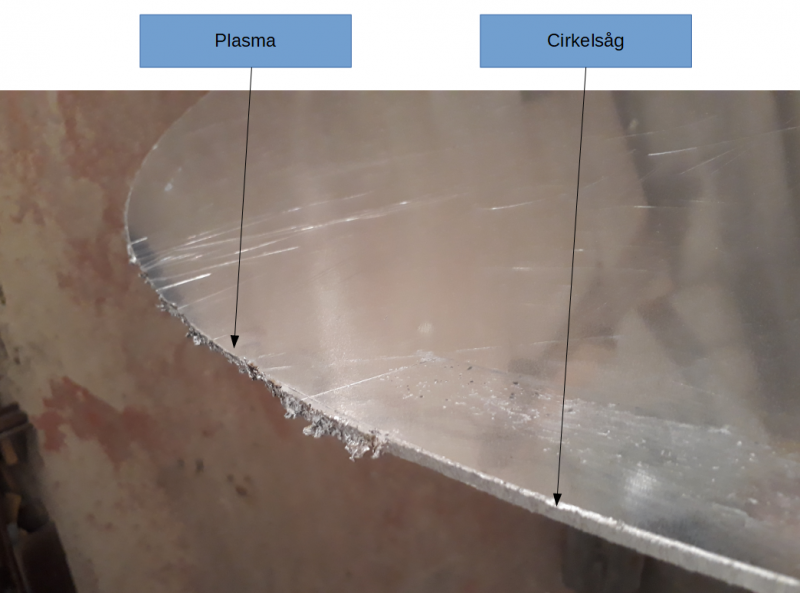 Igår fick jag svetsen. Började med att prova plasman och jämförde denna med cirkelsåg och kom fram till följande