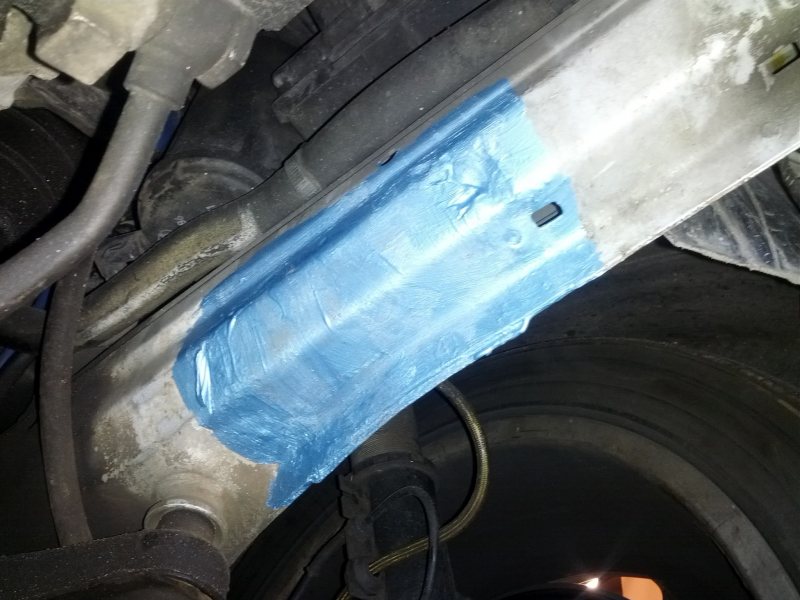 Framemot kvällen blev det besök hos Need For Speed och Tobbe för åtgärd av mitt defekta kränghämmartorn. Vi kom igång med arbetet ganska omgående vilket var bra för man vet aldrig hur alt flyter på. Efter att ha demonterat lite bromskylningsslangar och plockat bort kränghämmaren var skadan blottad och arbete kunde börja på allvar. Vi började med att borra bort punktsvetsarna som satt ordentligt, efter att ha insett hur bra dom satt skars tornet rent sonika av på mitten med en kap och därefter var det betydligt enklare att få av det defekta tornet Medan jag slipade balken jämn och fin samt målade området med svetsprimer förberedde Tobbe det nya huset med lite hål till punktsvetsarna. Det nya huset behövde sig en känga med hammaren för att passa perfekt mot rambalken, vi kom fram till att plåtbiten var skev och givetvis inte min bil :-) Första svetsen kom ganska fort och sedan gick det av bara farten, ett par ställen var lite trånga att komma åt men till slut var Tobbe och följaktligen jag nöjda med hur allt satt. Vi passade även på att byta ut ett kränghämmarstag som var lite slitet. Efter att ha målat området med lite coola produkter för att skydda mot nya angrepp så passade vi på att lufta bromsarna och tömma oken på lite knutan-vätska, när det var avklarat hade färgen torkat och kränghämmaren kunde monteras igen. Även slangar till bromskylning återmonterades. Jag hann även med att putsa bort lite gummirester sedan Knutan men hela bilen skulle behöva en seriös tvätt. När allt var klart kände jag mig otroligt lättad, underbart vad skönt det var att ha detta bakom sig. Ett stort fett tack till Tobbe och Need For Speed som ställde upp trots lång dag på jobbet. Det är helt underbart att få hjälp när det kniper som i detta fall. Precis innan jag drog noterade jag att ena bakljuset var släckt, lampan var hel så jag blev lite skum, fick tips om säkring och kikade på detta nä jag kom hem. Det visade sig att et var en säkring som var kass och efter att ha bytt den började lampor lysa precis som tänkt. Fortfarande återstår en del saker innan avfärd Packa Bilen Tvätta Bilen Putsa Rutor Tanka Fixa bältesöglor Tejpa upp lite kablage i skuffen Säkerligen en hel del andra tunga prylar :-) Imorrn blir det förhoppningsvis leverans från Fartfabriken som åtog sig att svetsa mitt fjäderbenstag, vi får hoppas det gick att rädda. Det kommer troligtvis även att bli ett besök i garaget. På fredag skall vi sätta öglorna på plats sen är det minsann dags! Gissa om man är sugen. Biten som skall ersätta den på bilen