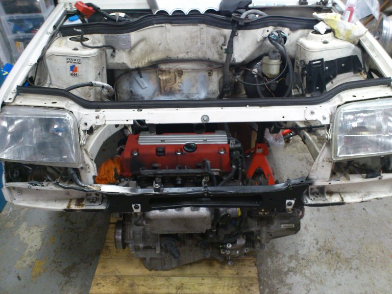 Har köpt motor, låda och lite tillbehör men det återstår en del saker som får köpas eftarhand. Ska iaf börja med att montera den och bygga motorfästen. Om det är nån som sitter på lite K20 orginaldelar så kan det vara intressant. Kontakta mig via PM isf. _________________ Renault 5 GTE -88 |
