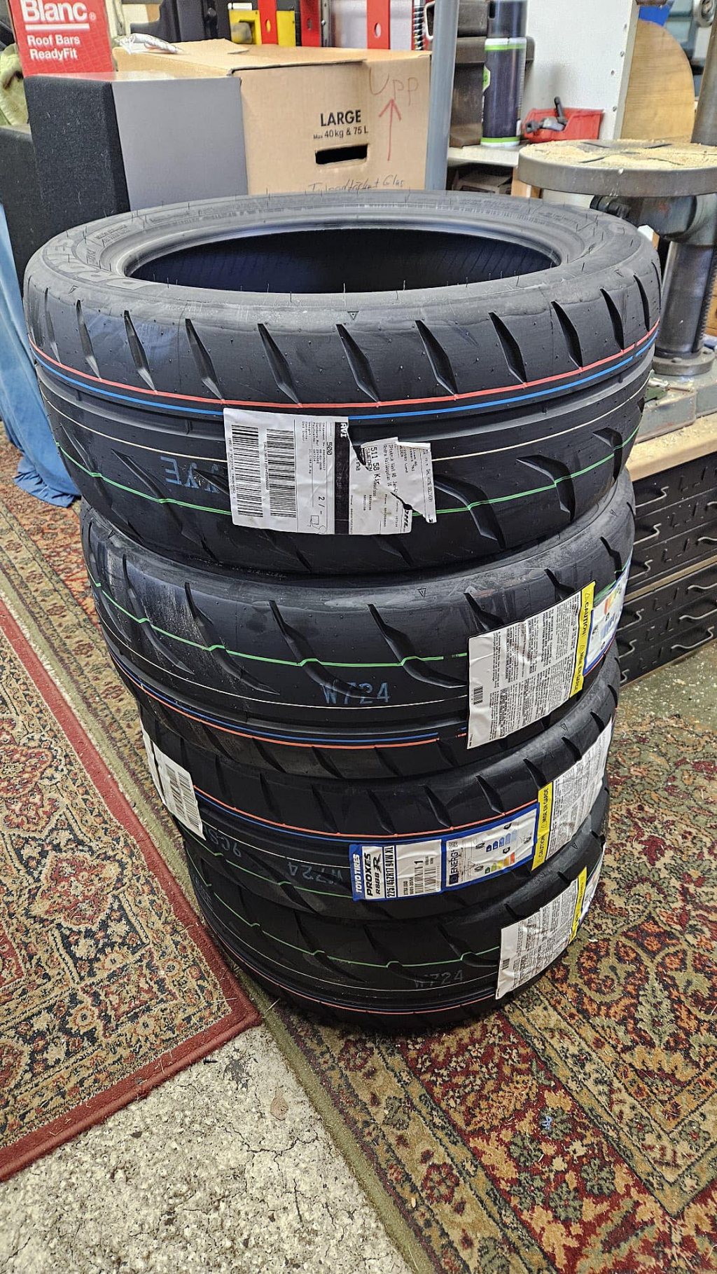 Letade efter något annat alternativ och bestämde mig till slut för att testa Toyo R888R, har kört en hel del på gamla 888 så det ska bli kul att se hur dessa uppför sig. Beställde på däckonline och det var nästan så att jag precis hade betalat när det stod en trevlig DHL chaufför utanför med 4 däck, grymt snabb leverans