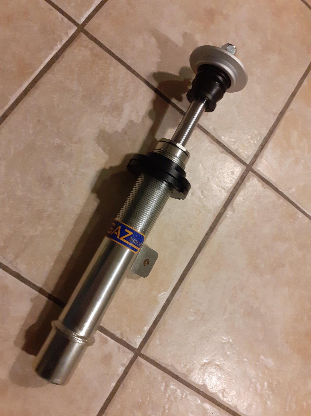 Så er der kommet de nye GAZ stoddæmpere, de er så bare ikke helt magen til de gamle, jeg har bestilt lidt forkert (til 2,5 fjedre og ikke 2,25 som jeg korer med)og så er de bygget anderledes end de gamle(kortere gevind i toppen), mine tårnlejer blev odelagt under uheldet så jeg bestilte nye hos leverandor i Polen og de er så leveret med en anden indvendig diameter så det passer heller ikke. Nu skal jeg lige kigge på det igen på lordag og gennemskue hvordan jeg får det til at virke. Men sådan er det jo med race, alt muligt hjemme bikset som passer sammen men bare det virker så går det nok. Jeg har også spartlet/slebet hojre forskærm og den ender nok med at blive bedre end den var for
